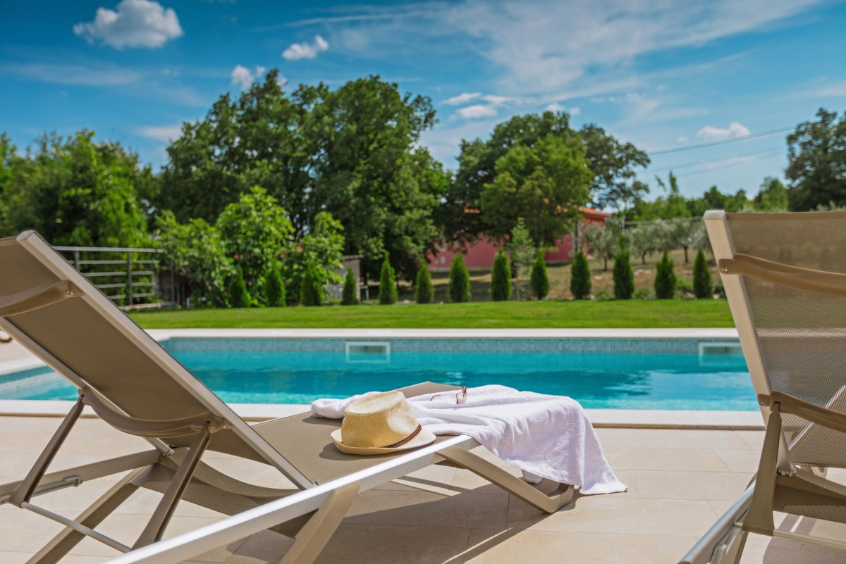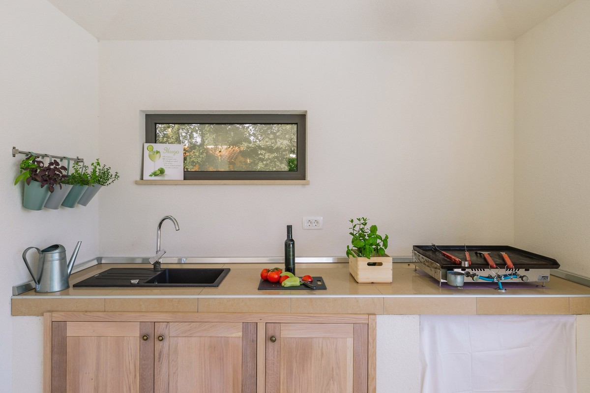 Das 1400 m² große, von außen nicht einsehbare Grundstück ist von Wiesen, Feldern und Weingärten umgeben. Neben einem privaten Pool, eine Außendusche, eine Sonnenterrasse mit Liegestühlen und zwei Sonnenschirmen bietet der Garten auch eine überdachte Terrasse mit Grill- und Essbereich, die zu ausgedehnten Grillabenden einlädt. Zur weiteren Freizeitgestaltung stehen Ihnen ein Badmintonnetz, eine Tischtennisplatte und ein Tischkicker zur Verfügung.