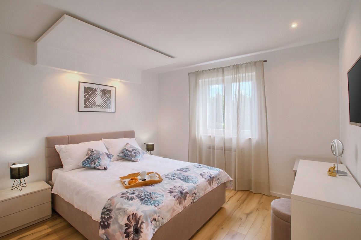 Die zahlreichen familienfreundlichen Kiesstrände von Rabac sowie wildromantische, naturbelassene Badebuchten sind mit dem Auto in wenigen Minuten erreichbar. Einkaufsmöglichkeiten, Restaurant und alles Weitere für den täglichen Bedarf finden Sie im ca. 5 km entfernten Labin, dessen Altstadt ebenfalls sehenswert ist.