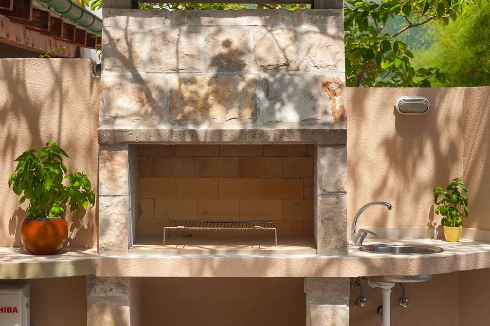 Die hausnahe, überdachte Terrasse verfügt über bequeme Gartenmöbel und ist ein idealer Ort für gesellige Stunden an den langen, warmen Sommerabenden aber auch ein sehr gemütlicher Treffpunkt am Tag. Auf dem Steingrill oder in der Sommerküche haben Sie die Möglichkeit köstliche Spezialitäten zuzubereiten. Genießen Sie die einmalige Atmosphäre die Ihnen diese Villa bietet.