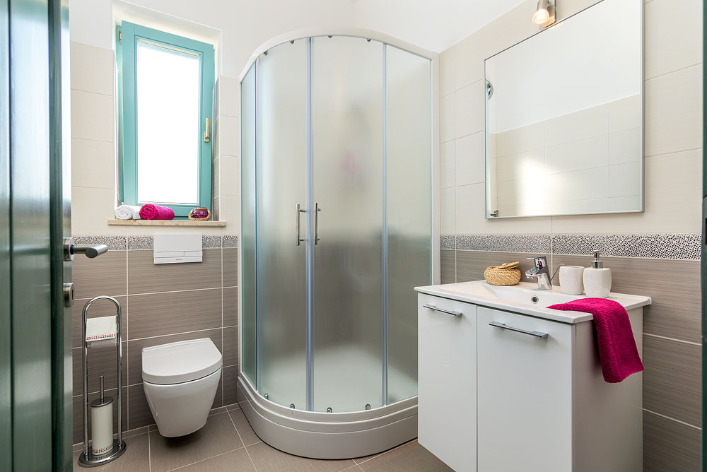 Die erste Etage verfügt über drei Schlafzimmer mit Doppelbett und Klimaanlage. Alle Schlafzimmer sind mit einem en Suite Badezimmer ausgestattet. Ein weiteres Badezimmer befindet sich im Erdgeschoss. Eine Schlafcouch im Wohnbereich bietet zwei weitere optionale Schlafplätze. Tierliebhaber werden sich von Ihrem Haustier nicht trennen müssen, denn diese sind hier ebenfalls gern gesehene Gäste.