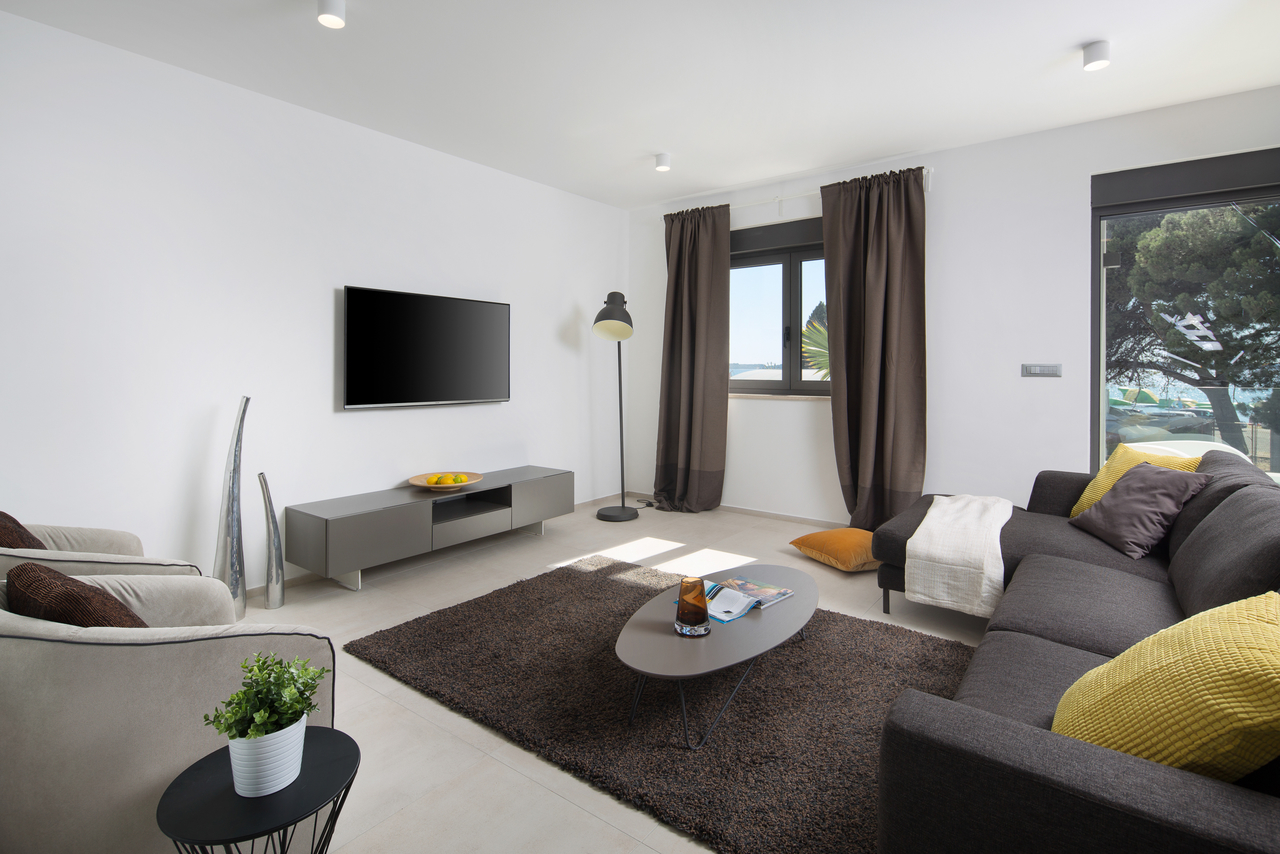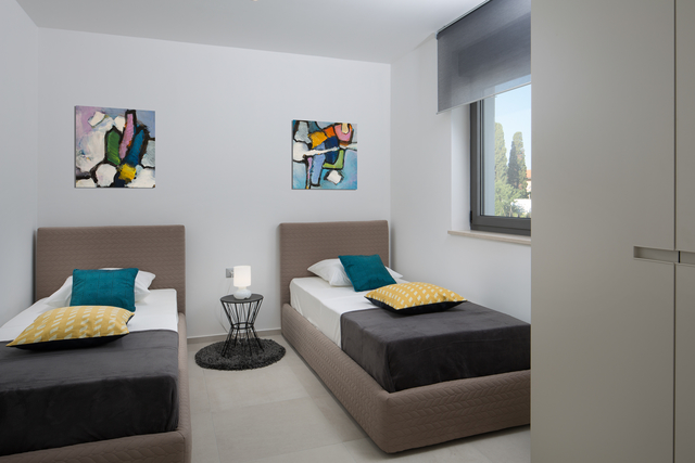 Dieses Ferienhaus befindet sich in Fažana, ca. 70 m vom Strand und ca. 150 m vom Zentrum entfernt. Es wurde im Jahr 2016 in einer sanften, unaufdringlichen Architektur erbaut und beherbergt insgesamt fünf Ferienwohnungen.