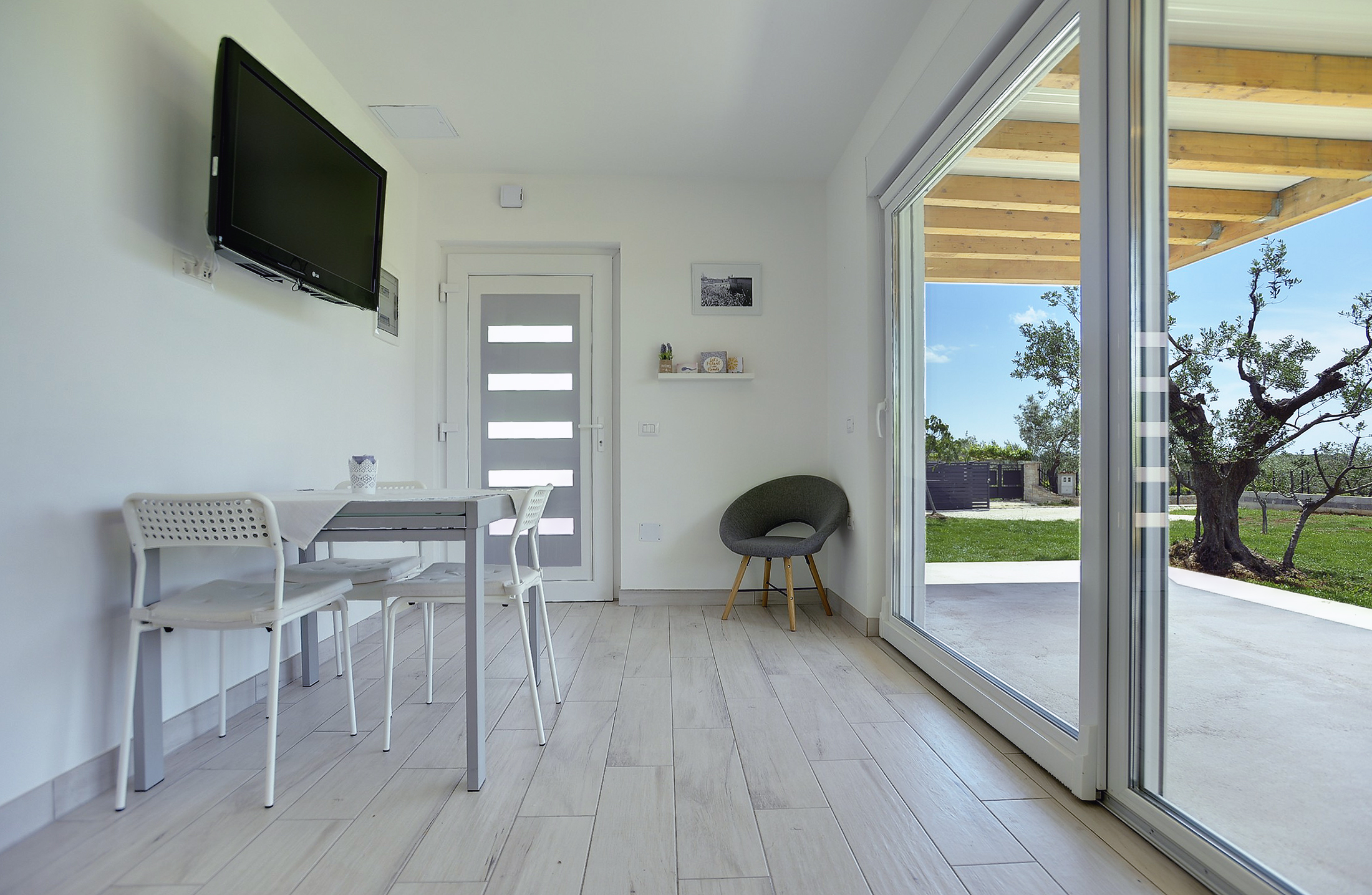 Dieses kleine, freistehende Ferienhaus mit privaten Garten befindet sich am Rande von Fažana, an der Südwest-Küste der Halbinsel Istrien. Es bietet auf einer Ebene eine moderne Unterkunft für 2 (+2) Personen. Das Ferienhaus verfügt über einen Wohn- und Essbereich mit einer Küchenzeile, ein Schlafzimmer mit Doppelbett und ein Badezimmer mit Waschmaschine. Zwei zusätzliche Schlafplätze stehen auf der Schlafcouch zur Verfügung. Der offene Wohnbereich bietet Zugang zu der überdachten Terrasse und dem Garten.