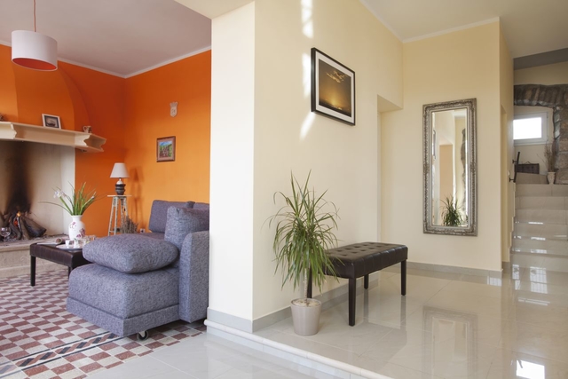 CD-Player, DVD-Player, Fliesen, getrennter Wohn- und Essbereich, Kamin, Klimaanlage, Sat-TV, Sessel, Sofa, Terrasse, Terrassenzugang