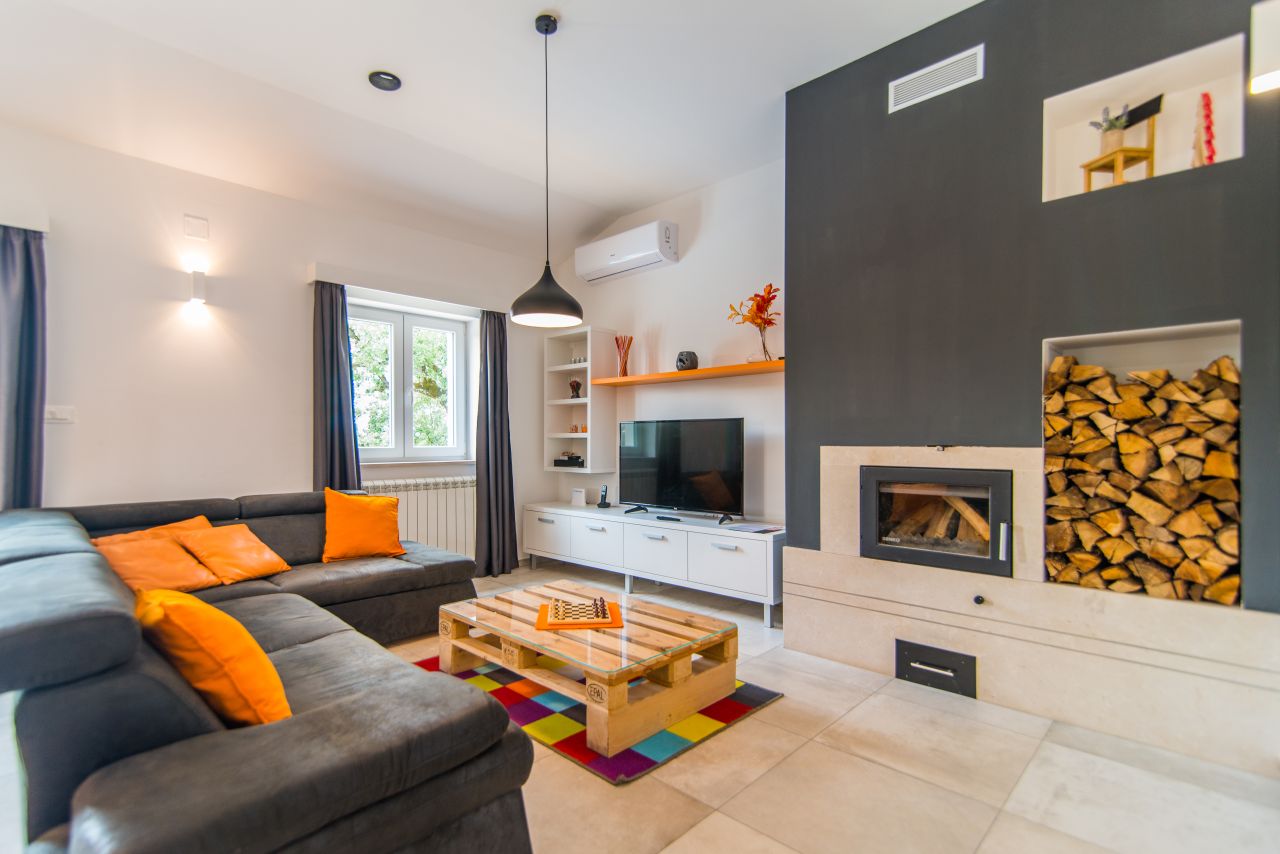 Dieses modernes Ferienhaus befindet sich naturnnah in kleinen Ort Milohanci, bei Tinjan, im grünen Landesinneren der Halbinsel Istrien. Das Ferienhaus bietet mit 3 Schlafzimmer, 2 Badezimmer und 1 Gäste-WC Platz für 6 Personen. Es eignet sich perfekt für Familien mit Kindern oder für eine Gruppe von Freunden. Ein kostenfreies Kinderbett kann Ihnen auf Anfrage gestellt werden. Tierliebhaber werden sich von Ihrem Haustier nicht trennen müssen, denn diese sind hier ebenfalls gern gesehene Gäste. Der Strand an der Westküste ist ca. 18 km entfernt.