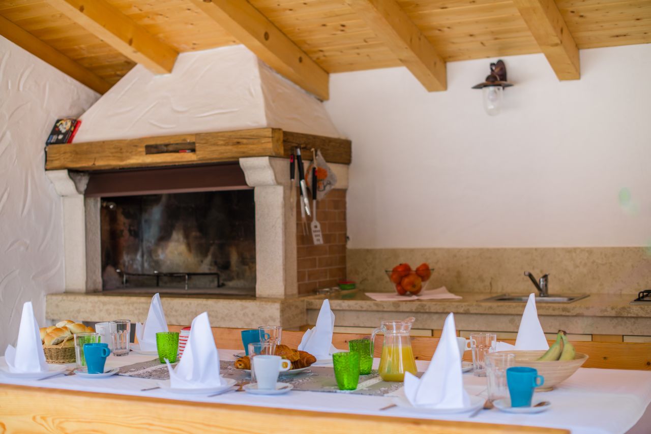 Fliesen, Kamin, Klimaanlage, offener Wohn- und Essbereich mit Küche, Sat-TV, Sessel, Sofa, Terrasse (Überdacht), Terrassenzugang