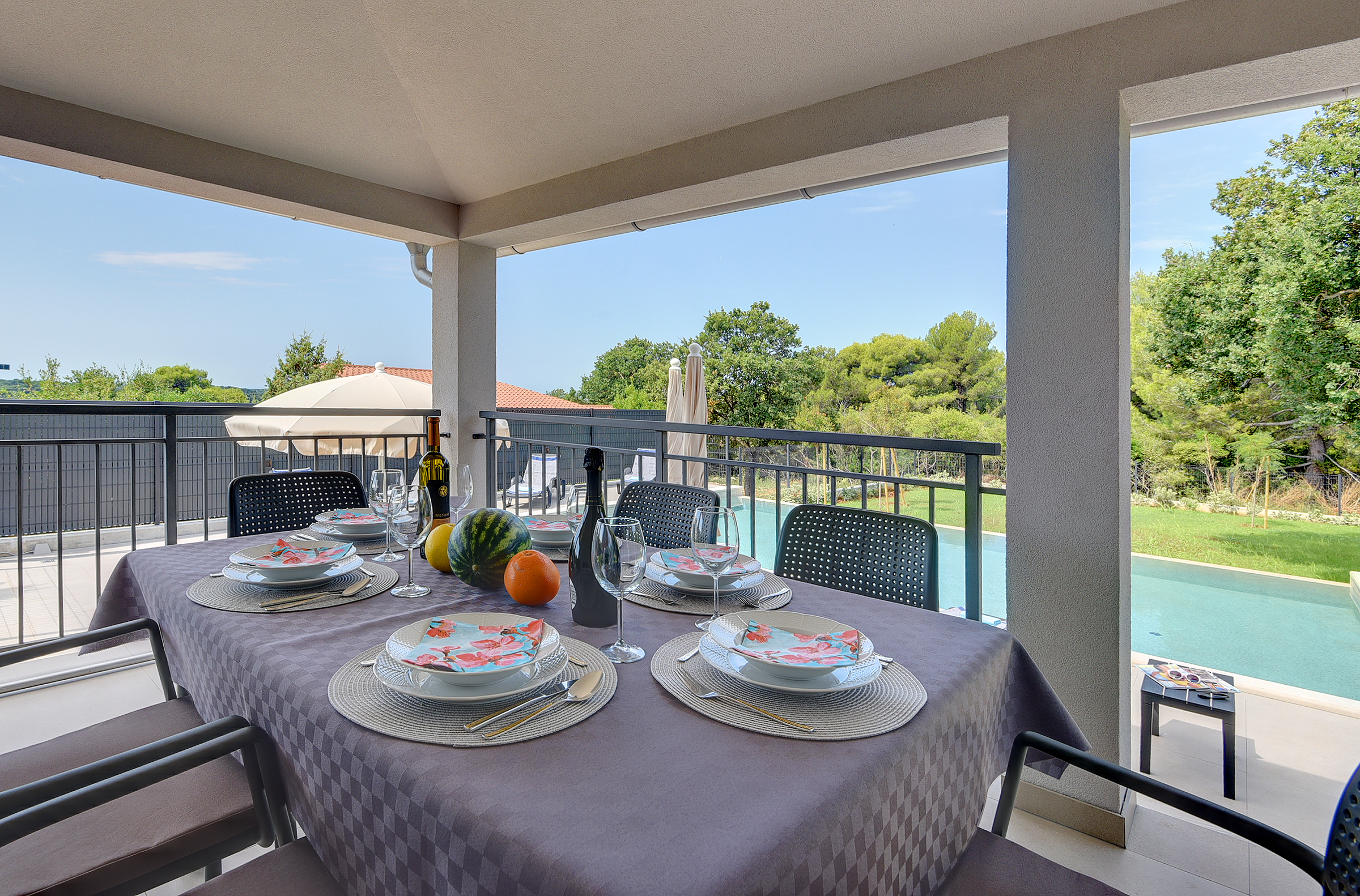 Dieses Ferienhaus mit Pool liegt einer ruhigen, ländlichen Lage im Umland von Pula, an der Südwest-Küste der Halbinsel Istrien, nur wenige Autominuten vom historischen Zentrum entfernt.