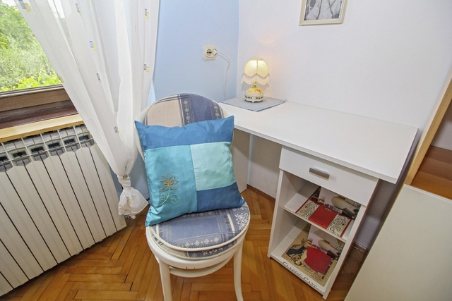 Neben der gemütlich eingerichteten Ferienwohnung erwartet Sie ein gepflegter Garten mit überdachtem Grill- und Essbereich sowie zwei möblierte Terrassen, die Ihnen zur alleinigen Nutzung zur Verfügung stehen. Für die weitere Freizeitgestaltung steht im Garten eine Tischtennisplatte und für Kinder ein Spielbereich mit Schaukeln bereit. Bei Ihrer Vermieterin können Sie hausgemachte Produkte wie Olivenöl, Wein, Schnaps oder Marmelade kaufen. Ein Parkplatz ist auf dem abschließbaren Grundstück vorhanden.